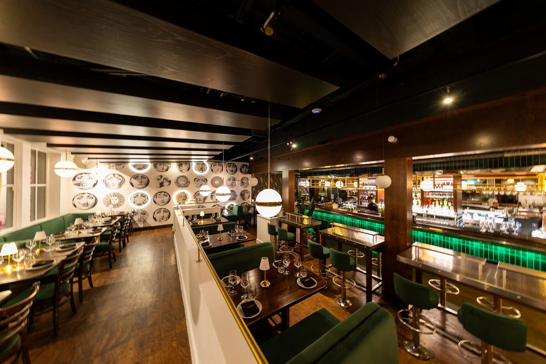 An impressive, large dining space available for private hire, separated from the main restaurant by a spacious bar area to provide maximum privacy and comfort. The room offers 80+ covers and includes access to a free car park with unmatched parking availability. Located on the ground floor, the space is fully accessible with no stairs—comfortable, chic, and highly functional.